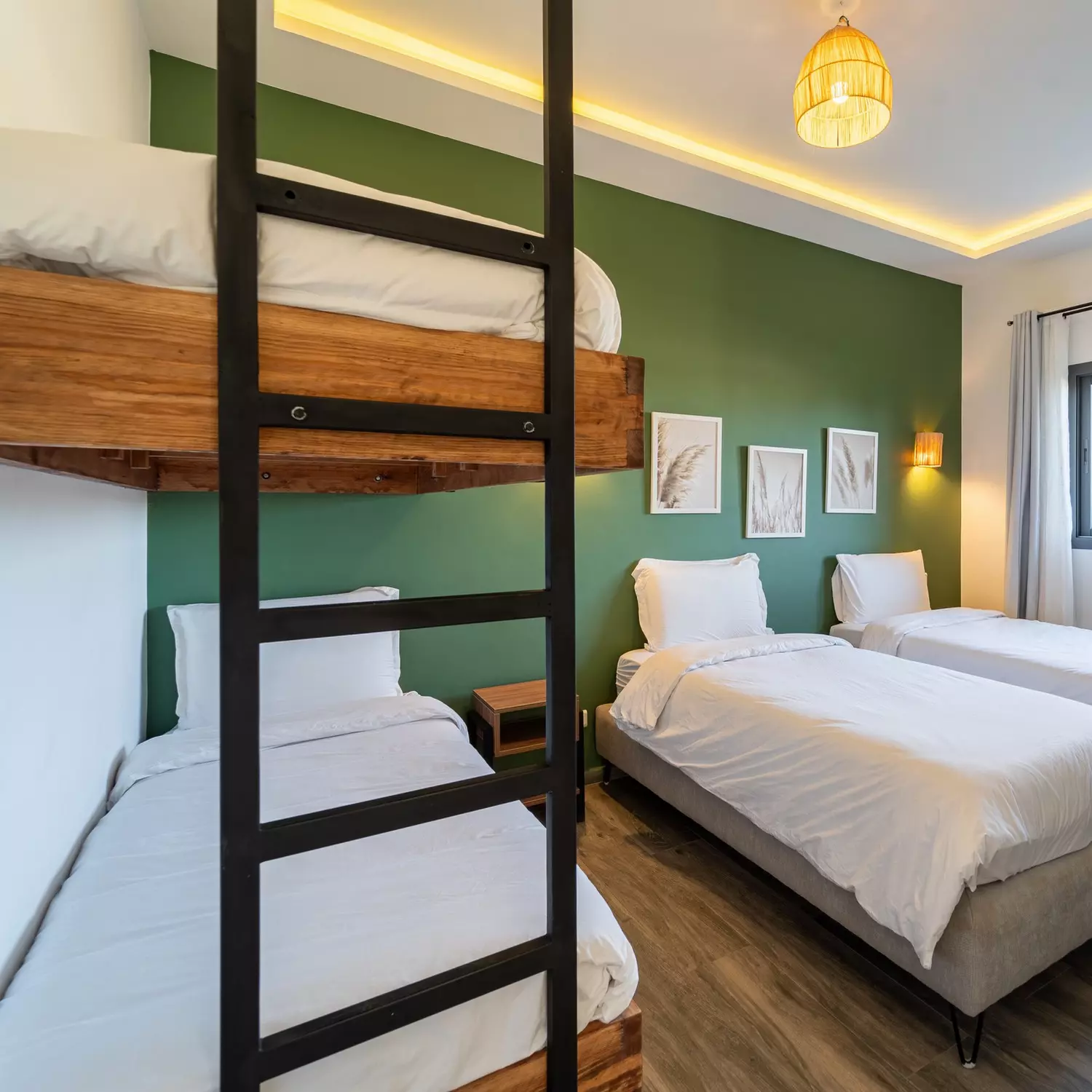 La maison dispose de 3 chambres confortables pouvant accueillir jusqu’Ă 8 personnes, avec un agencement flexible comprenant 2 lits queen size, 4 lits individuels.Â