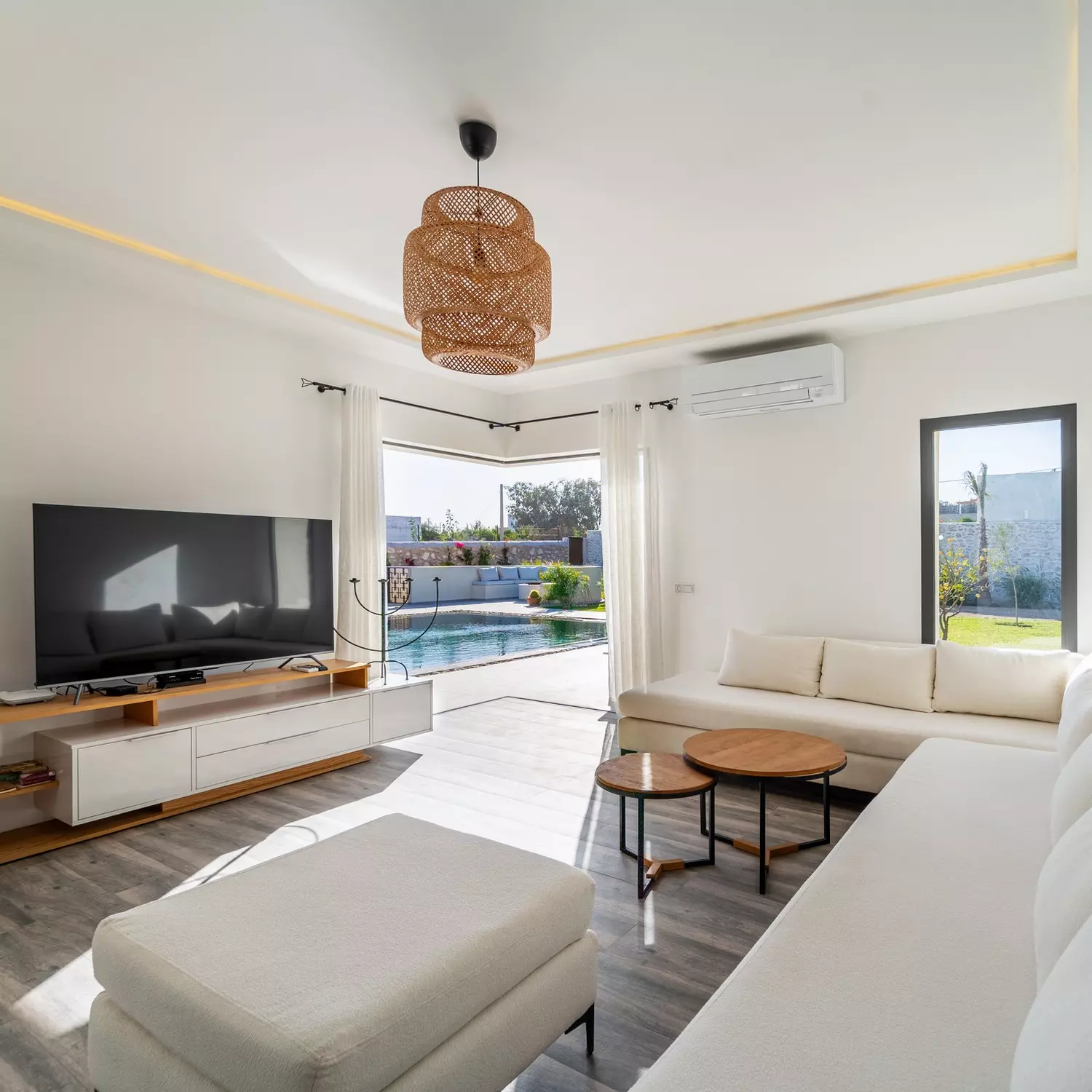 DĂ©couvrez cette magnifique maison familiale nichĂ©e dans les environs paisibles d’Essaouira, un havre de tranquillitĂ© parfait pour les couples et les familles en quĂŞte de dĂ©tente.Â